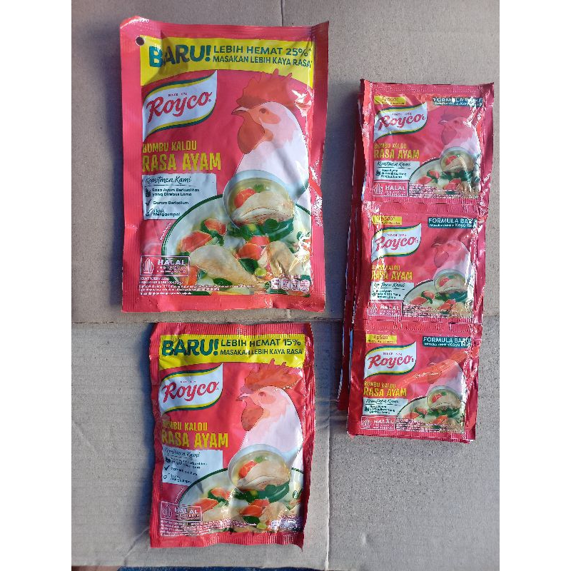 Royco kaldu rasa ayam tersedia dalam 3 varian ukuran