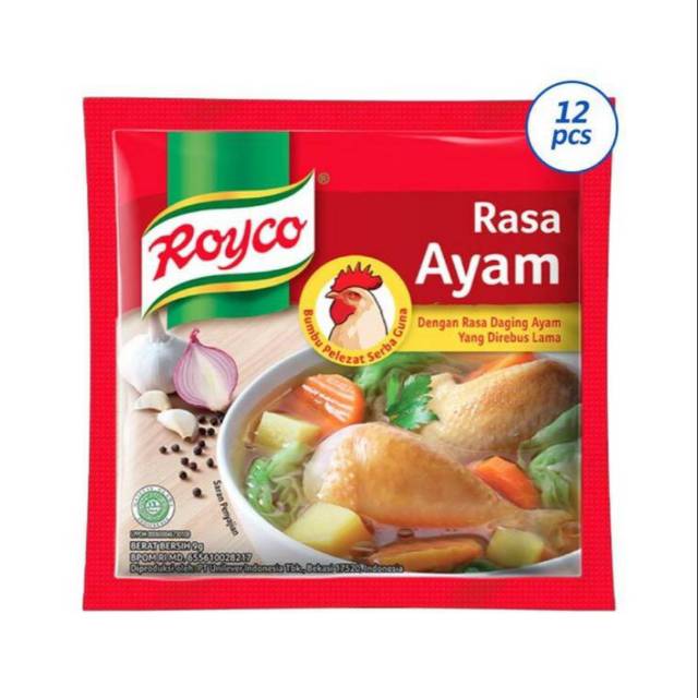 ROYCO Kaldu Ayam Penyedap Rasa [9 g/ 12 pcs] merupakan bumbu penyedap rasa yang terbuat dari bahan pilihan & rempah-rempah alami untuk menghasilkan masakan dengan citarasa gurih & rasa yang mantap dengan cepat. Bubu ini mudah terserap sehingga cocok untuk beragam hidangan berkuah, aneka tumisan, dan lain-lain.