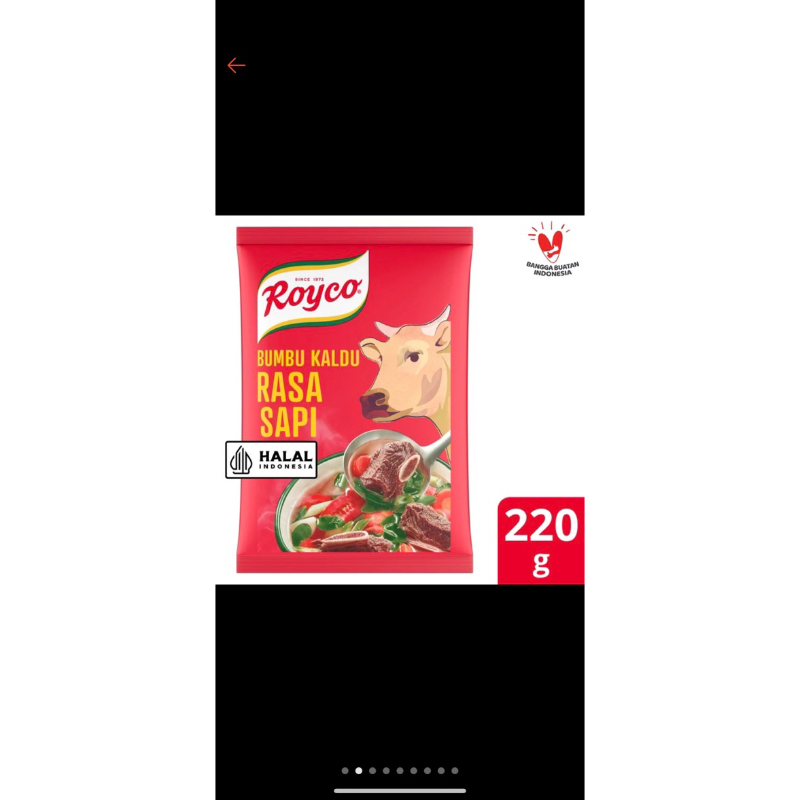 � Sajikan kelezatan tak terlupakan dengan bumbu penyedap rasa sapi Royco yang mengandung kaldu sapi asli. Sekarang dalam kemasan 220 g - BPOM MD655610003217