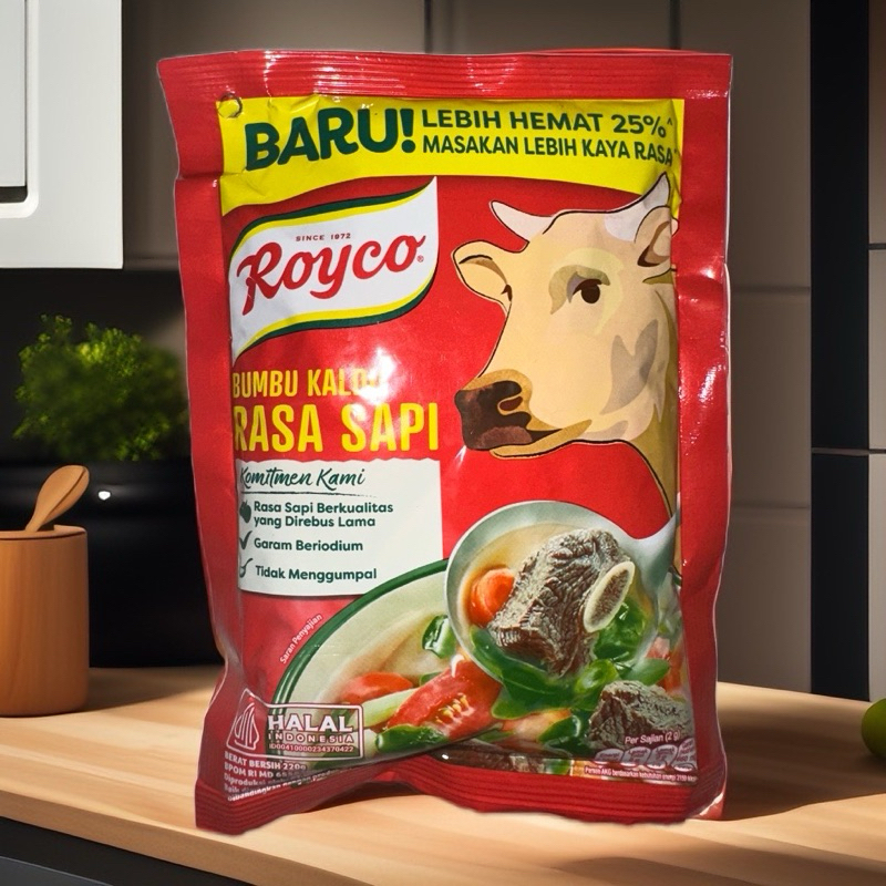 Royco sapi bumbu kaldu rasa sapi berkualitas yang di rebus lama cocok untuk semua olahan masakan