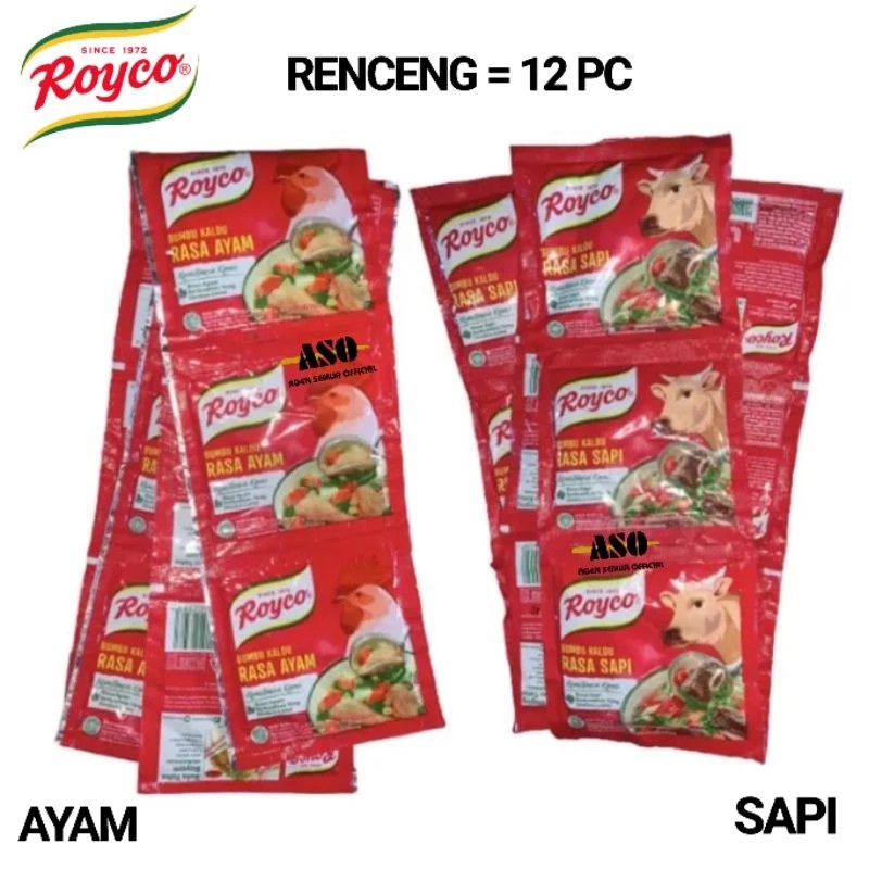 ROYCO bumbu penyedap 9gr kaldu AYAM SAPI sachet RENCENG ( isi 12 )