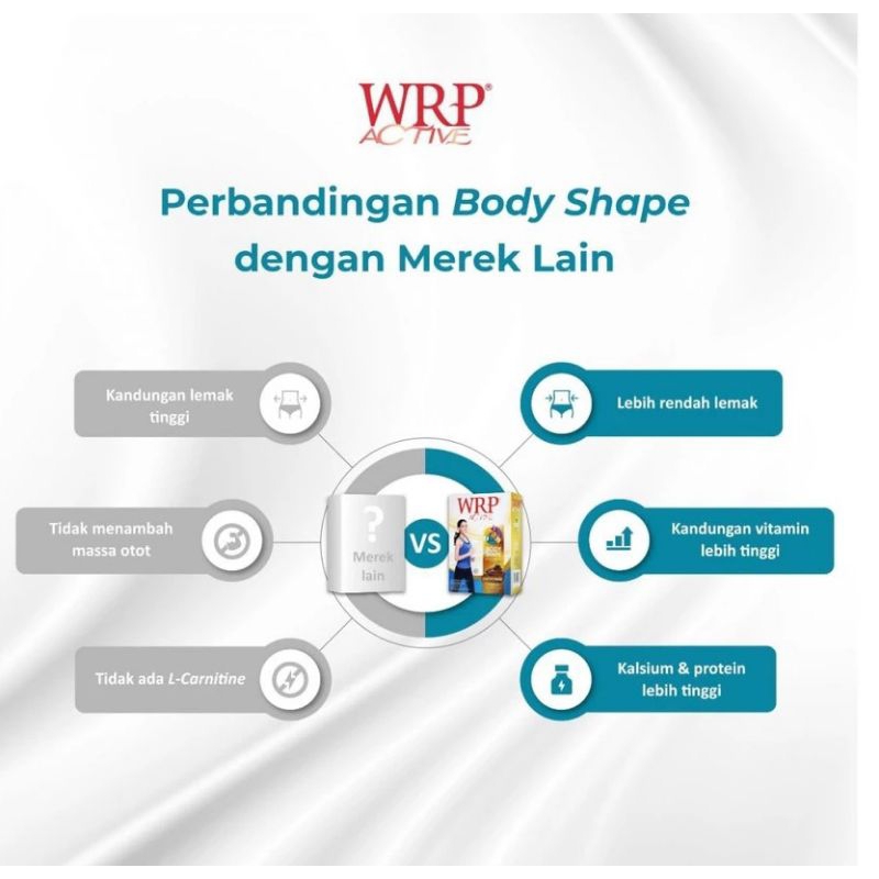 WRP Active Bodyshape adalah susu tinggi protein yang cocok untuk pembentukan tubuh yang kencang dengan berat badan ideal, diperuntukkan bagi wanita yang aktif berolahraga sehingga pembentukan otot lebih optimal. Kandungan L-Carnitin sebagai fat burner membantu meningkatkan metabolisme pembakaran lemak tubuh.