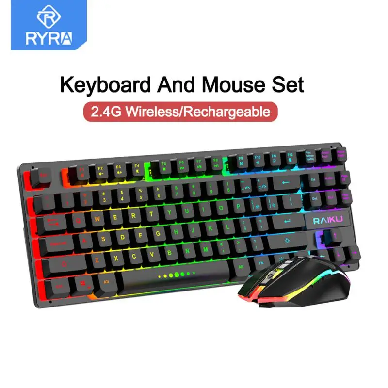 RYRA RGB 2.4G Wireless Gamer Keyboard And Mouse Set Backlit Rechargeable 87 Key Computer Keyboard And Mouse Kit For PC Computer