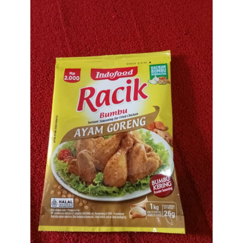 Bumbu Racik Indofood.Bumbu kering untuk ayam goreng.Enak dan praktis.Kemasan 26 gram.