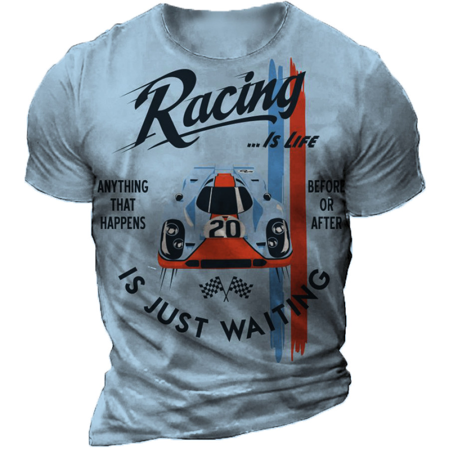 Racing Is Life Stripe Print T-Shirt