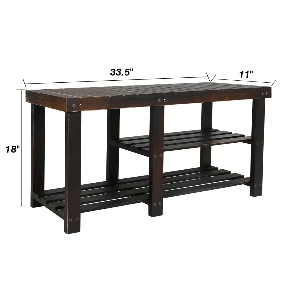Rack Bench, 3Tier Wood Shoe Bench With Boot Organizer, Free Standing Shoe Racks Bench, Storage Shoe Shelf For Entryway Hallway