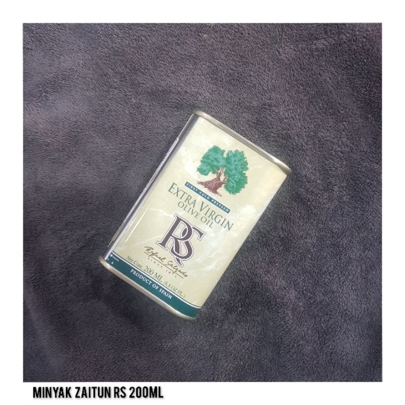 Rafael Salgado RS Extra Virgin Olive Oil Minyak Zaitun isi 200ml dengan kemasan kaleng.