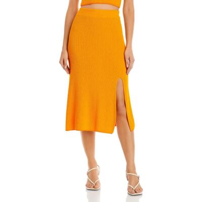 Rag - Bone Женская трикотажная юбка-трапеция миди в рубчик с разрезом по низу BHFO 7765, Deep yellow