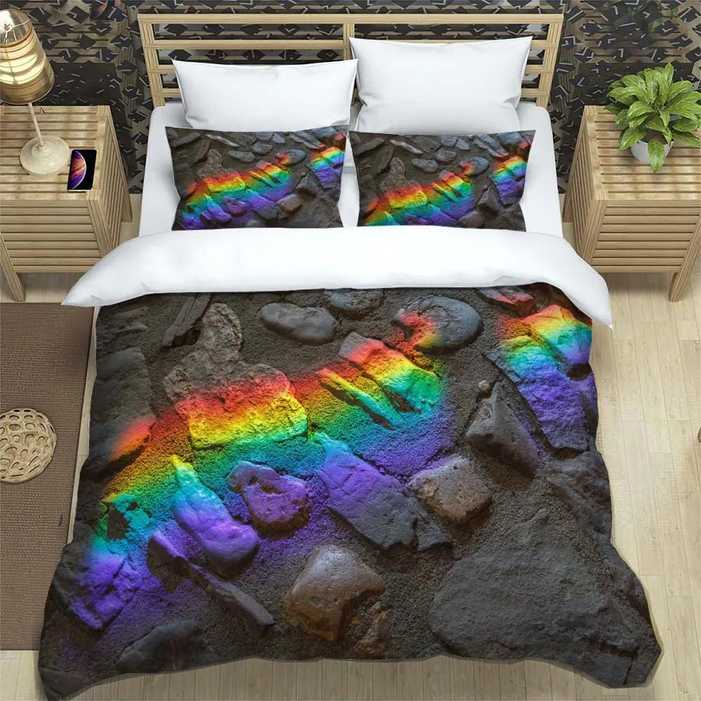 Классика Rainbow Fresh с принтом, мягкий и удобный, полный размер, настраиваемые комплекты постельного белья-одеяла EU single(135x200cm)