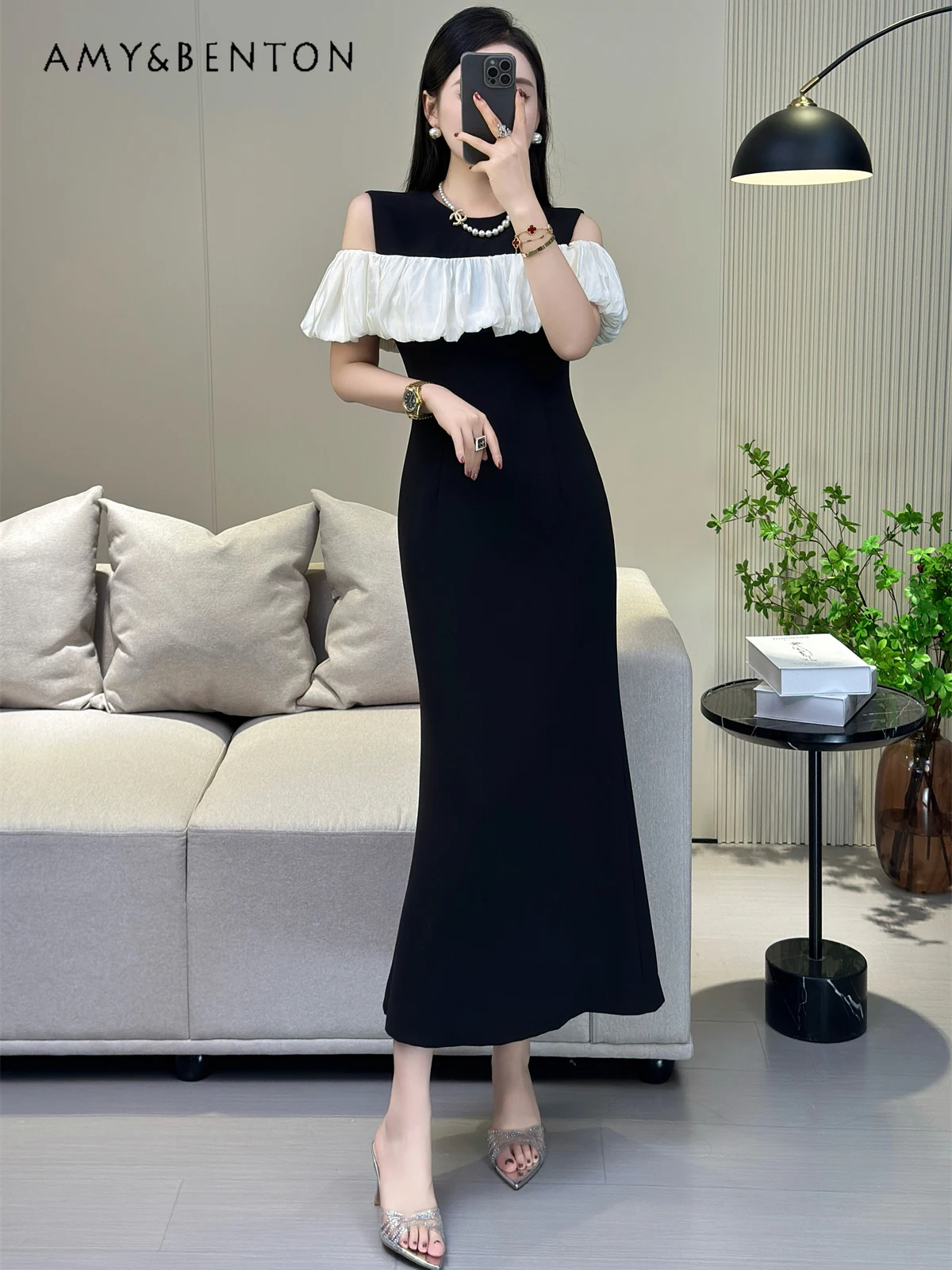 Sisterlinda Slash Neck Swinging Patchwork Dresses Elegant Backless Body-shaping Long Robe Female High Street Evening Party Wear