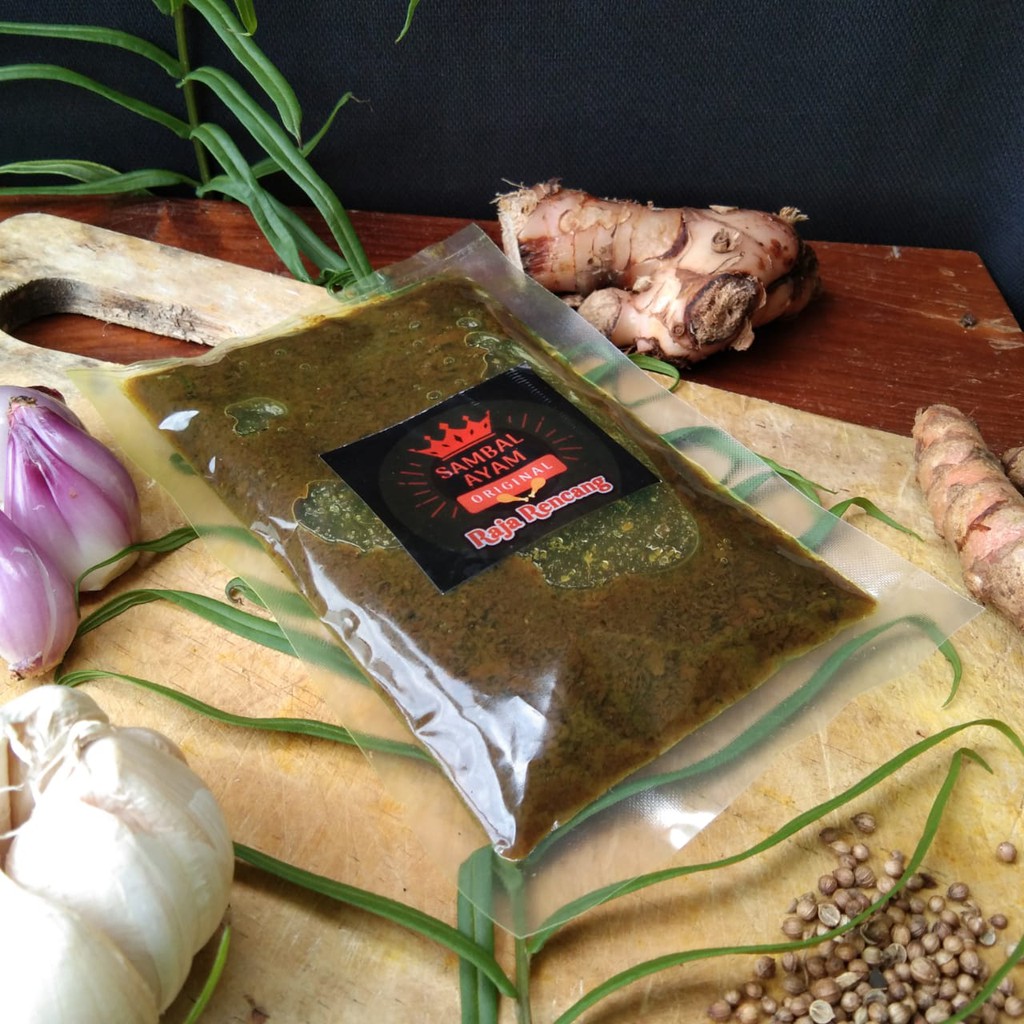Produk sambal khas dengan bumbu rempah plus irisan daging ayam.