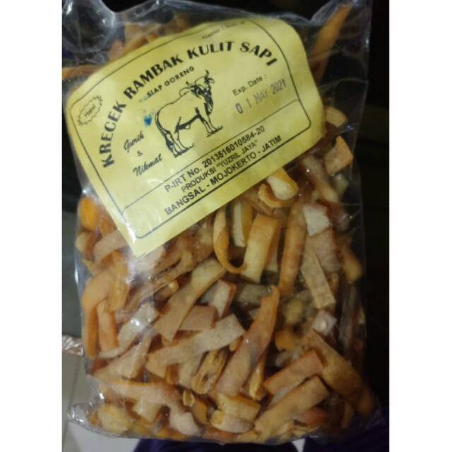 Krecek rambak mentah dari kulit sapi asli. Tanpa pewarna dan tanpa pengawet. Langsung goreng. Berat 500gr. Bentuk stik
