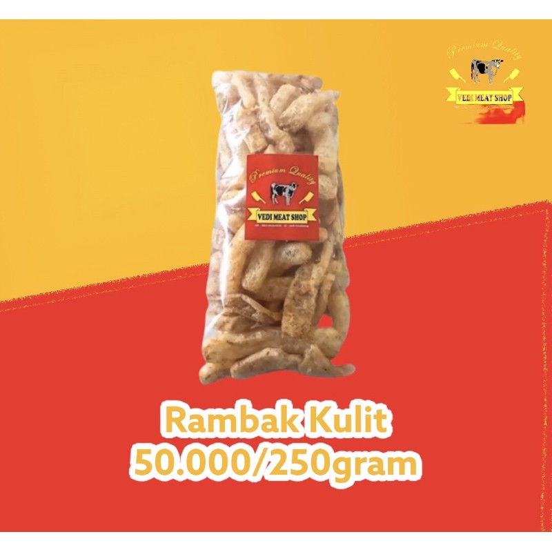 Rambak kulit sapi segar yang renyah dengan rasa gurih dan juga asin. Rambak ini siap makan tanpa harus di goreng terlebih dahulu.