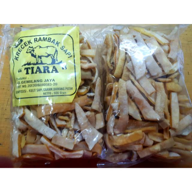 Rambak sapi bentuk stik dengan rasa gurih nikmat, tinggal digoreng tanpa perlu dijemur dan sudah berbumbu