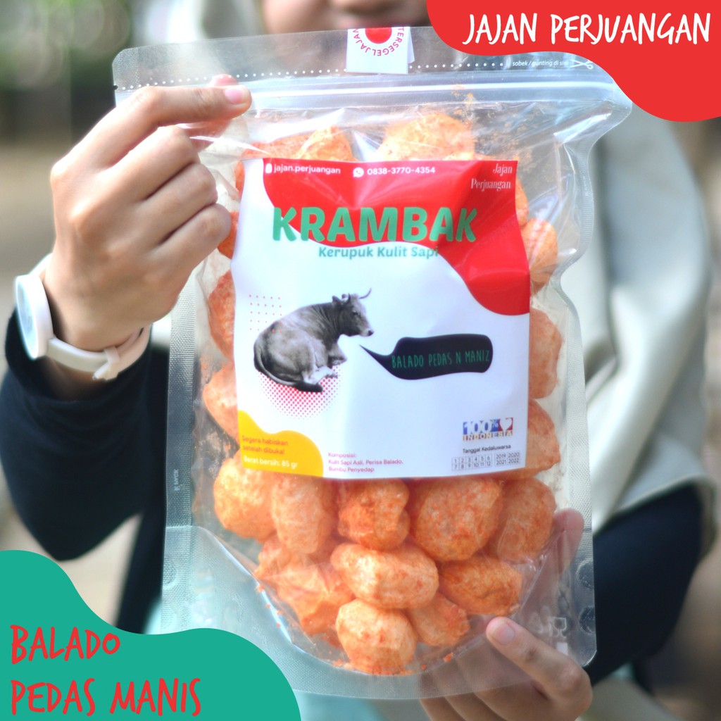 Rambak dari kulit sapi dengan rasa balado pedas manis. Cocok bagi kamu yang doyan rasa pedas manis legit balado.