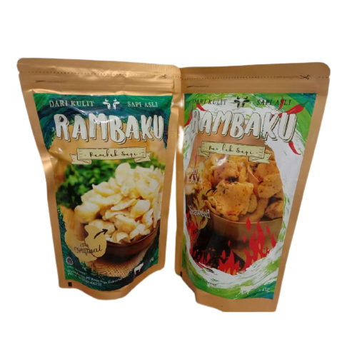 Rambaku Original dan Rumput Laut Pedas terbuat dari kulit sapi asli rumput laut dan cabe alami.