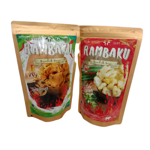 Rambaku Cabe Garam Pedas dan Cabe Garam terbuat dari kulit sapi asli, bubuk bawang putih alami, rumput laut dan cabe alami.
