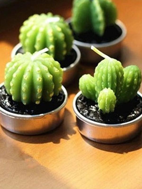 Rare Simulation Plant Candle Mini Cactus Candles Home Decor Table Tea Light Garden Decorative Candles, Green