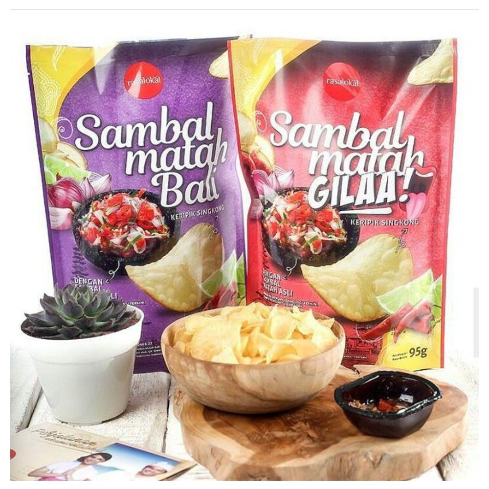 Keripik singkong dengan sambal matah asli ini merupakan food product dari Rasa Lokal Indonesia