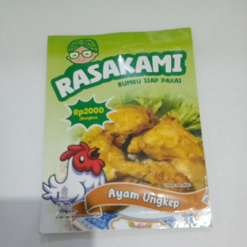 RASAKAMI bumbu ayam ungkep adalah bumbu siap pakai yang dicampur olahan rempah pilihan, lengkap dengan ekstrak rempah serta dikeringkan secara khusus untuk menjadi andalan keluarga saat memasak ayam ungkep buatan sendiri di rumah dengan cara yang mudah dan cepat. yuk, Nikmatin lezatnya RASAKAMI bumbu ayam ungkep.
