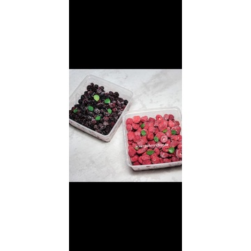 Raspberries yang dibekukan secara IQF dimana buah dibekukan secara cepat dan individu (kristal es yang dihasilkan sangat kecil) sehingga nutrisi buah tetap terjaga.