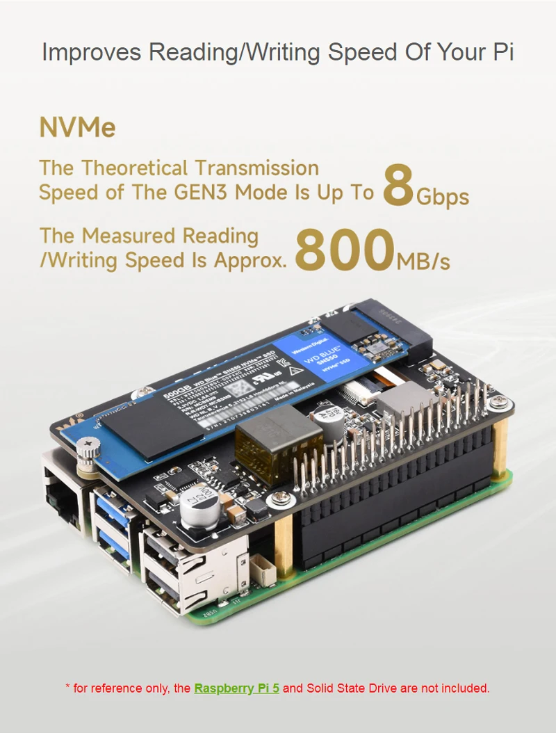 Raspberry Pi 5 PCIe To M.2 With PoE HAT (B) Supports NVMe Protocol M.2 Solid State Drive High-speed Reading For Raspberry Pi 5