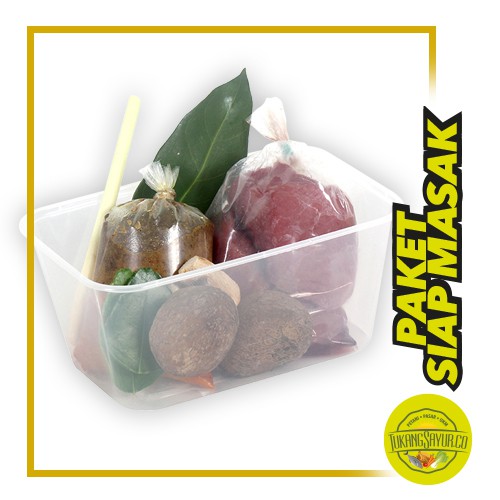 daging sapi, bumbu rawon, kluwek, serai, lengkuas, daunjeruk, daun bawang, kaldu bubuk