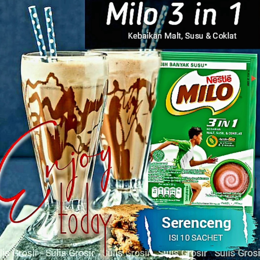 Ready Milo 3 in 1 Sachet Active Go 1 Renceng Isi 10 Sachet