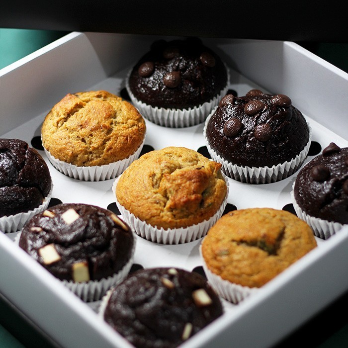 - Double Chocolate: A dark chocolate muffin studded with 70% dark chocolate chips