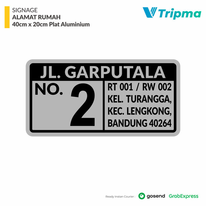 Ready Rambu Alamat Rumah 40cm x 20cm - Plat Alumunium Sticker Reflective