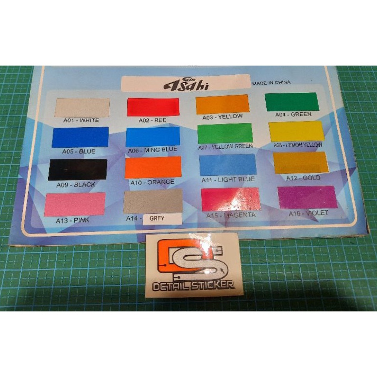 hallo kak selamat berbelanja Hallo kak produk kita restock lagi nih Pasti sudah tahu kan Ready Sticker Stiker Scotlight Scotlite Asahi Reflective meteran 7A0 kesukaan kalian semua ini? Best product Wajib tambahkan selongsong ini saat order kecuali kurir instant: https://shp.ee/jhrwbjt Lebar bahan 60cm. Harga permeter. beli 1= 60cm x 1meter beli 2= 60cm x 2meter beli 3= 60cm x 3meter... dst. Semua warna sticker Reflective/memantulan cahaya (kecuali hitam). Bahan Reflective ini tidak disarankan untuk wrapping. khusus cutting sticker. A01 = White A02 = Red A03 = Yellow A04 = Green A05 = Blue A06 = Ming blue A07 = Yellow Green A08 = Lemon Yellow A09 = Black A10 = Orange A11 = Light Blue A12 = Gold A13 = Pink A14 = Grey A15 = Magenta A16 = Violet AYO BURUAN DIORDER. ORDERAN MASUK LANGSUNG KAMI KIRIM. >>>> MEMBELI = SETUJU