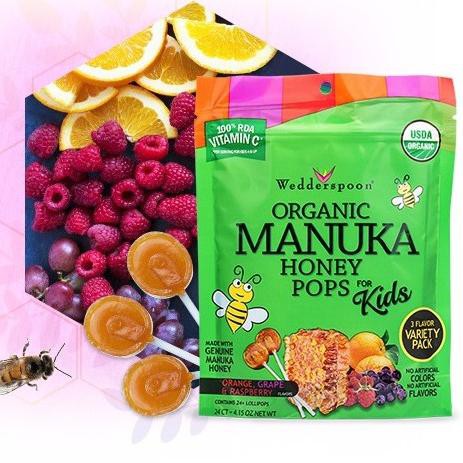 Ready Stock Wedderspoon, Organic Manuka Honey Pops For Kids, Orange, Grape & Raspberry, 24 Count ...