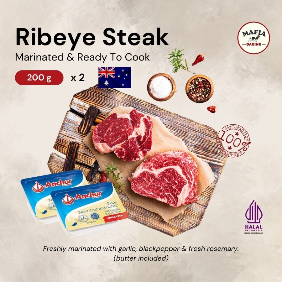 Ready to Cook Marinated Ribeye Steak Set by Mafia Daging sudah termasuk: