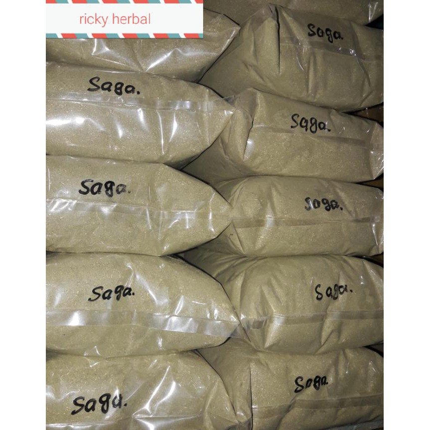 Jual daun saga bubuk yang berasal dari 100% daun saga yang dipotong dan dikeringkan lalu digiling hingga halus. Diproduksi secara higienis tanpa campuran gula, bahan pengawet, pewarna dan bahan kimia lainnya