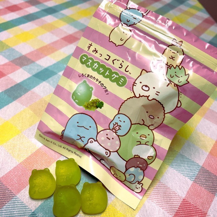 Gummy dengan bentuk karakter Sumikko Gurashi yang lucu dengan rasa Anggur masket