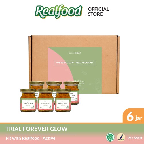 Fit with Realfood Trial Forever Glow adalah program semi concentrated Realfood terbaru, diperkaya dengan kolagen dan ekstrak kurma. Fit with Realfood Forever Glow telah teruji BPOM, Halal, dan ISO 22000, diformulasi menggunakan berbagai bahan-bahan lokal asli Indonesia berkualitas, yang salah satunya adalah sarang burung walet.