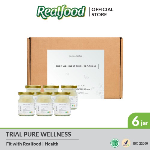 Trial Program Realfood Pure Wellness berisi Program Trial 6 Hari Realfood Pure Wellness (6 x 70ml) dengan pemanis alami stevia rendah kalori, bebas gula, hadir untuk dapat dikonsumsi oleh siapa saja. Fit with Realfood Pure Wellness Sugar Free adalah formula program fully concentrated Realfood bebas gula, menemani rutinitas Realfoodfam, yang tengah diet hingga penderita diabetes tipe II, yang berupaya mengubah pola hidup dengan mengurangi gula.