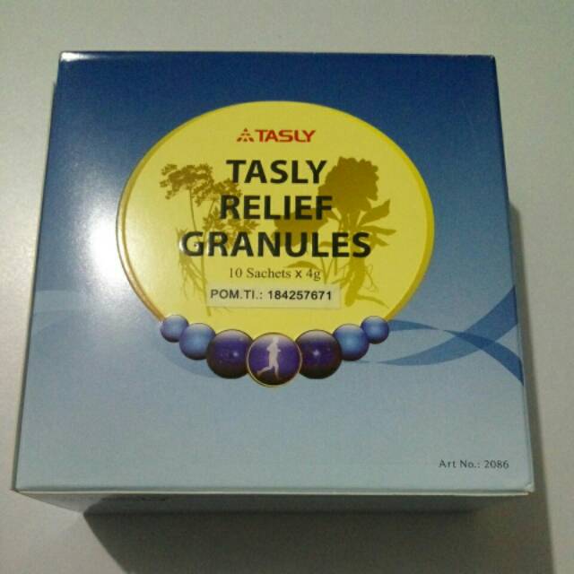 Tasly Relief Granules merupakan obat herbal yang berkhasiat untuk sakit kepala dan vertigo. Vertigo sendiri adalah kurangnya aliran darah menuju otak dalam jangka waktu yang cukup lama. Terjadinya pengerasan pada pembuluh darah arteri di otak. Gejala yang sering muncul seperti pusing kepala, kepala terasa berat ditambah perasaan gelisah, telinga berdengung, insomnia, mudah panik dan marah, banyak bermimpi, daya ingat berkurang, tidak fokus dan pelupa.
