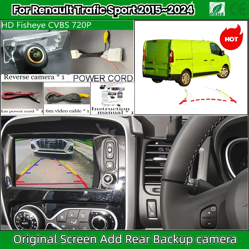 Rear View Camera For Renault Trafic Sport+ 2015~2024OEM Screen Add Backup Reverse Camera HD Night Vision