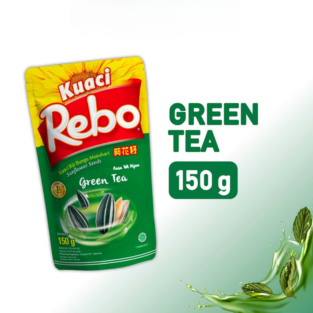 Rebo Kuaci Rasa Green Tea 150 gr - Cemilan Biji Bunga Matahari