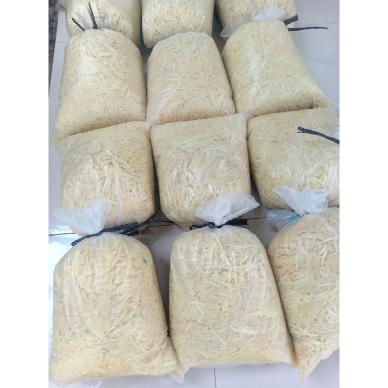 Rebung rajang untuk isi lumpia, ready banyak ya gak. 1 pac isi 5 kg ya kak.