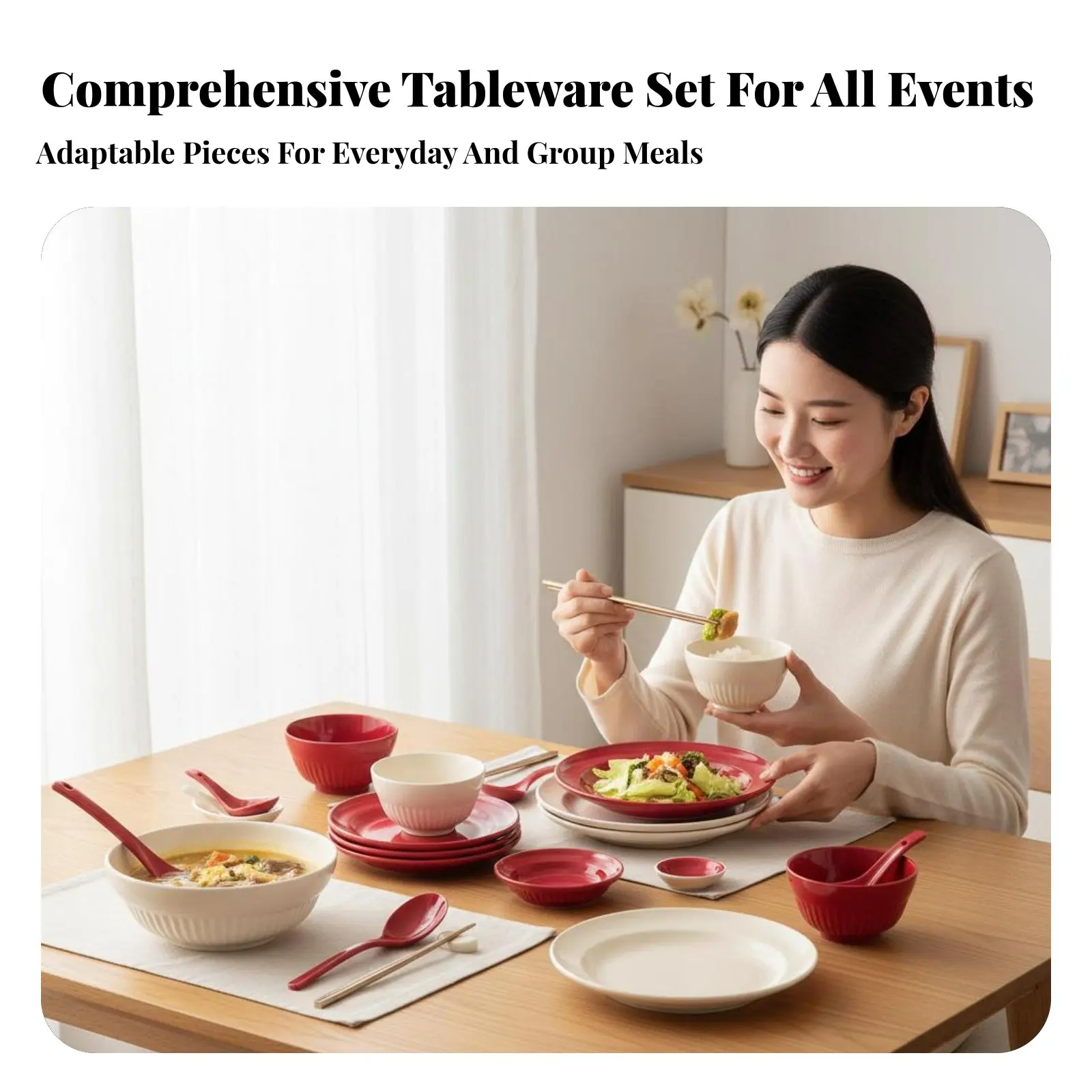 Red Ceramic Dinnerware Set, Modern Tableware, Bowl and Plate Set, Adult Use, Gift Option