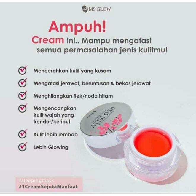 Flawless Glow Red Jelly membantu untuk meningkatkan kelembaban kulit dan membuat wajah tampak lebih glowing seketika. Red Jelly juga dapat memudarkan flek hitam dan mengencangkan kulit wajah