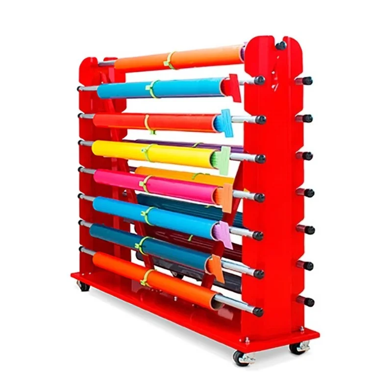 Red Metal Fabric Roll Display Rack - Adjustable Heavy Duty Roll Rack Vinyl Roll Storage Rack