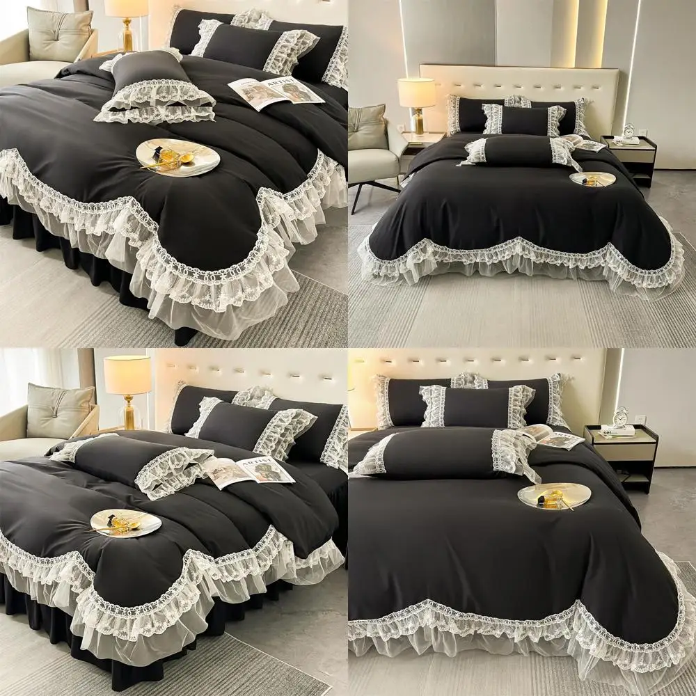 Red Queen Size Ruffle Lace Polyester Duvet Cover Set with Zipper - Ultra Soft 3-Piece Bedding
