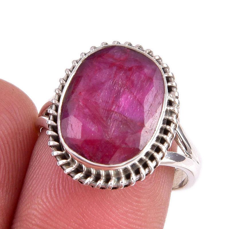 Red Ruby(Simulated) Gemstone Handmade 925 Sterling Silver Gift Ring S.7.5 f4s30