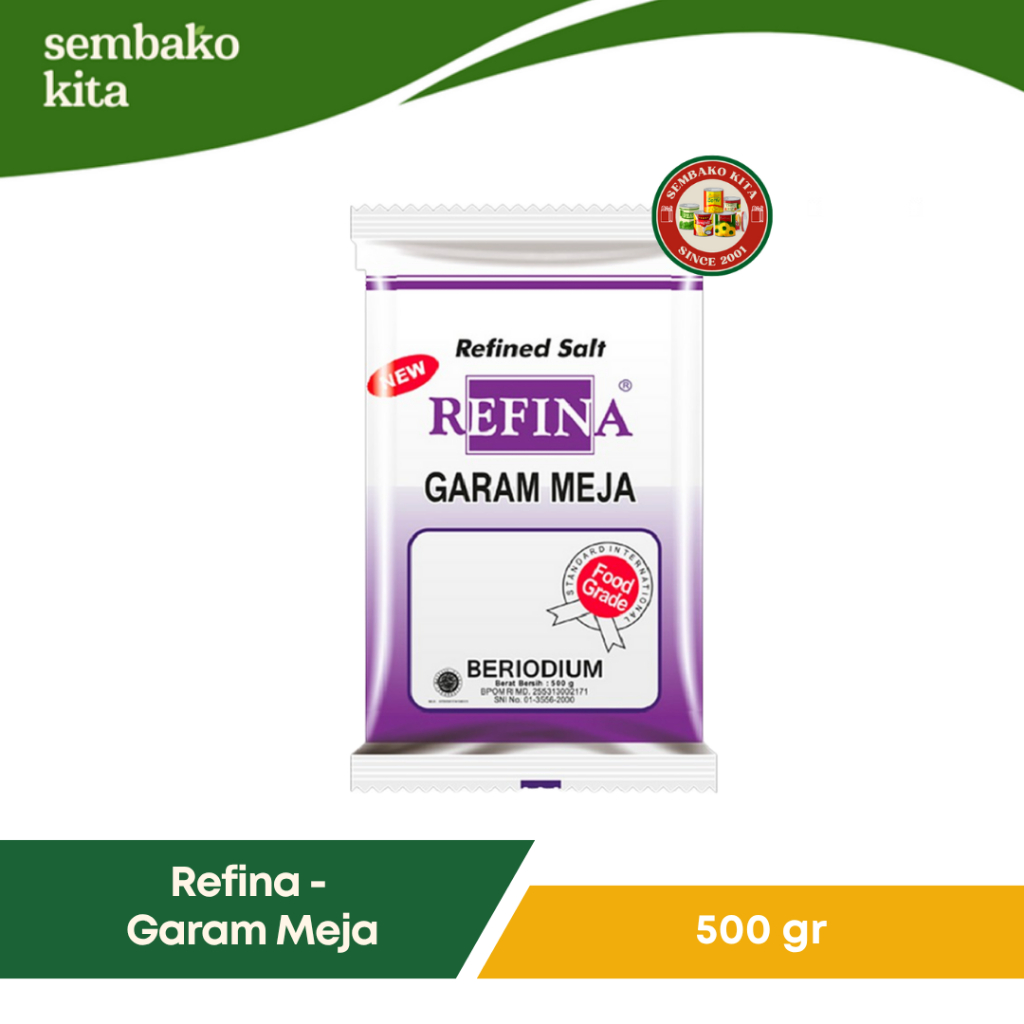 Refina Garam Meja adalah garam konsumsi halus yang telah diperkaya dengan yodium (minimal 30 ppm), diolah melalui proses refinery modern yang memastikan garam putih bersih, halus, dan bebas gumpalan. Dikemas dalam kemasan plastik 500 g yang praktis untuk rumah tangga.