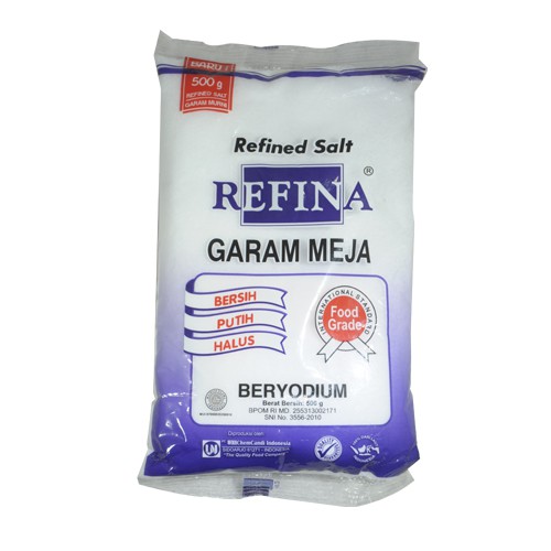 Garam Refina merupakan garam konsumsi dengan tekstur yang halus, putih, dan bersih. Dibuat dengan teknologi refinery pertama yang akan menghasilkan garam sehat dan layak untuk dikonsumsi. Dapat digunakan untuk memasak atau ditaburkan pada makanan.
