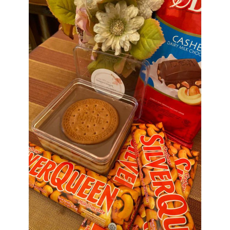 Regal Dessert Box kami menggunakan full regal di campur dengan crustard yang manisnya ga samasekali bikin kalian eneg dan lelehan coklat silverqueen delfi yang makin membuat kalian cinta sama dessert box buatan kami .