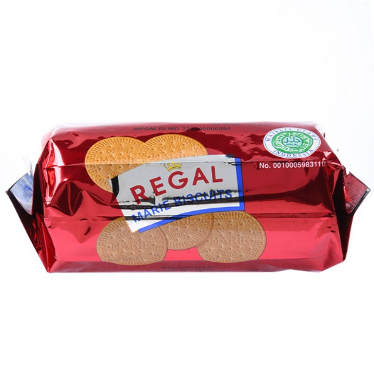 Regal Biskuit Marie merupakan sebuah biskuit Regal yang terbuat dari bahan-bahan alami seperti susu, mentega, telur, dan juga tepung yang memiliki kualitas tinggi serta diproses secara higienis sehingga aman untuk dikonsumsi. Regal Biskuit Marie memiliki beberapa kandungan gizi dan juga nutrisi yang baik untuk menjaga kesehatan dan membantu tumbuh kembang buah hatu. Sebut saja, protein, kalsium, serat, karbohidrat, vitamin A, B1 dan D. Dengan kandungan yang baik tersebut Regal Biskuit Marie memberikan manfaat membantu perkembangan tulang, membuat antibody untuk sistem kekebalan tubuh, menjaga pencernaan si kecil dan terhindar dari sembelit.